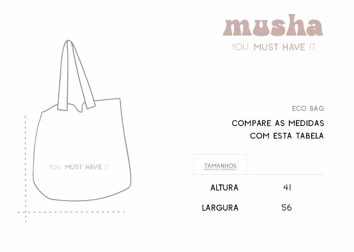 Com botão de pressão para fechamento e estampa exclusiva da coleção Tempo, essa ecobag é mais do que uma bolsa — é uma extensão da sua rotina, com charme e propósito.